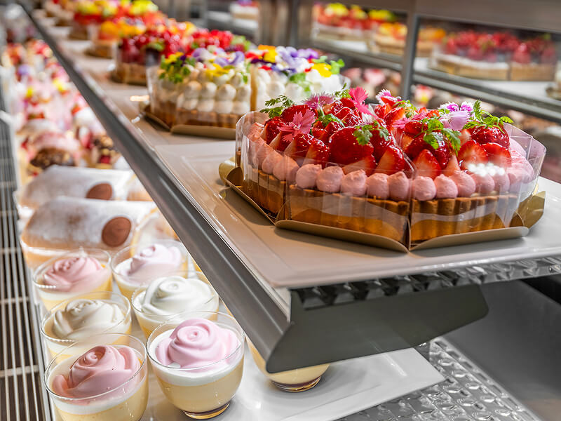 "SARAS PATISSERIE" on the second floor is known for its art-like, visually stunning sweets that are as delightful to eat as they are to look at.