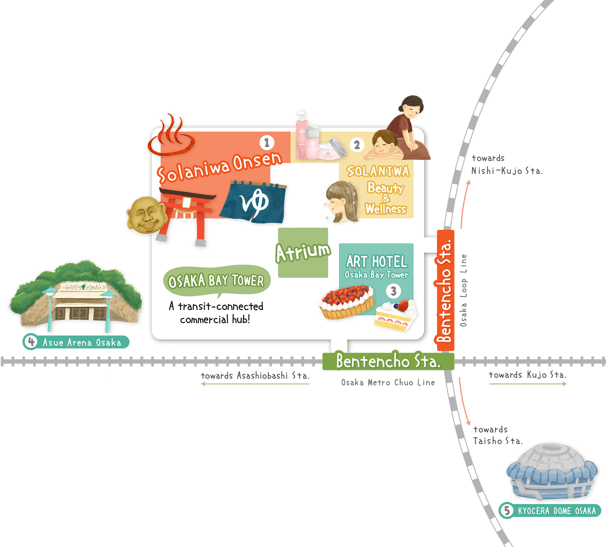 Food, beauty, and relaxation — right by the station. Perfect for your fan adventures, too♪ Food, beauty, and relaxation — right by the station. Perfect for your fan adventures, too♪