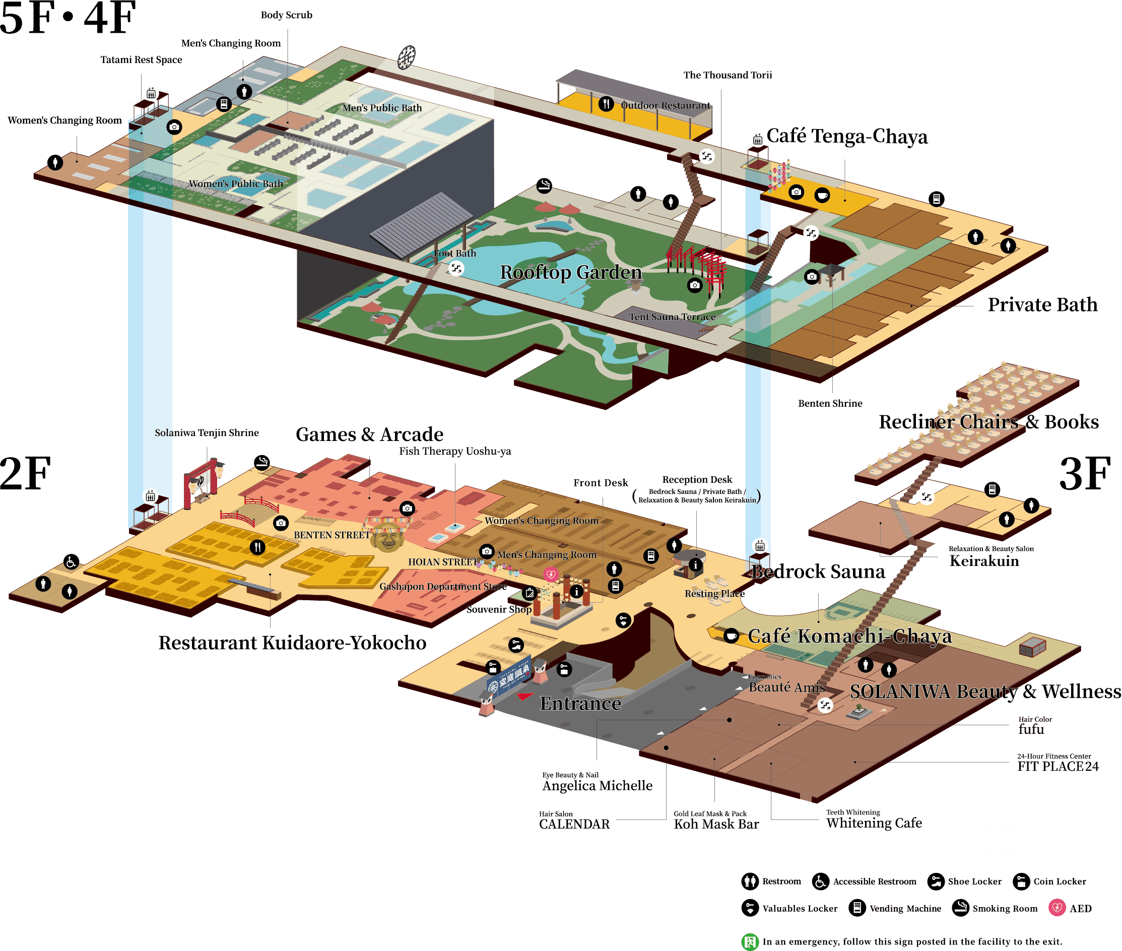 All the salons can be used by those who do not use Solaniwa Onsen.