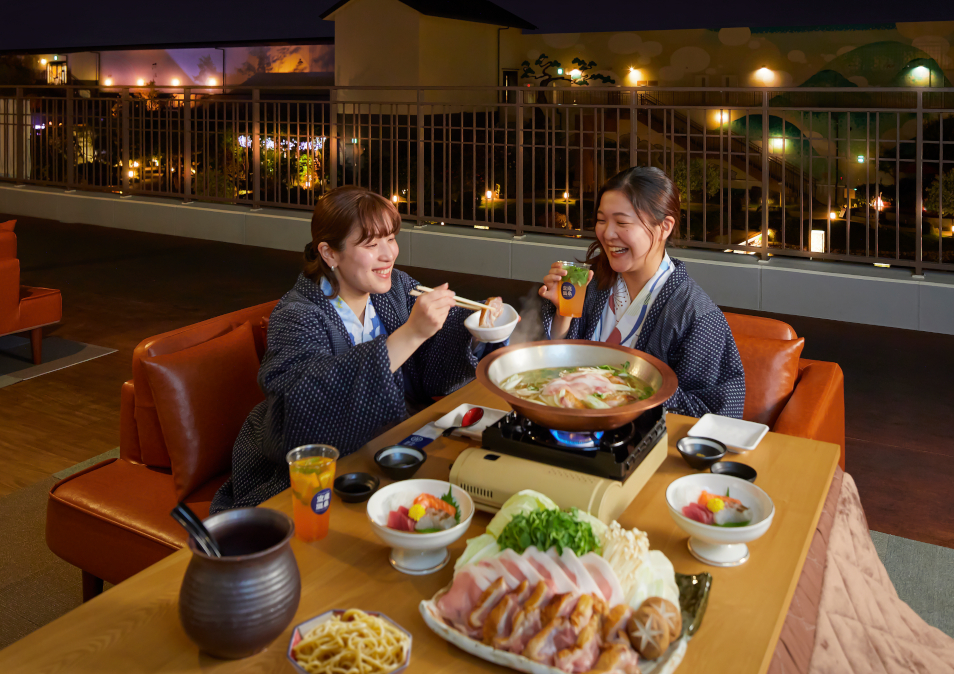 As fall turns to winter, it's the perfect time to warm up with a kotatsu and hot pot. Enjoy a hot pot made with carefully selected ingredients and authentic dashi broth, the meal tastes even better when enjoyed outdoors! Relax in a semi-private room with a kotatsu and sofa, while savoring the fresh air.