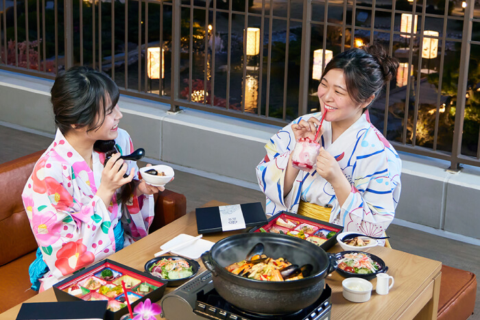 温泉も一緒に入れば疲労回復&リラックスもできて最高の一日が過ごせます。空庭温泉からつながっているので浴衣のままご利用可能です。
