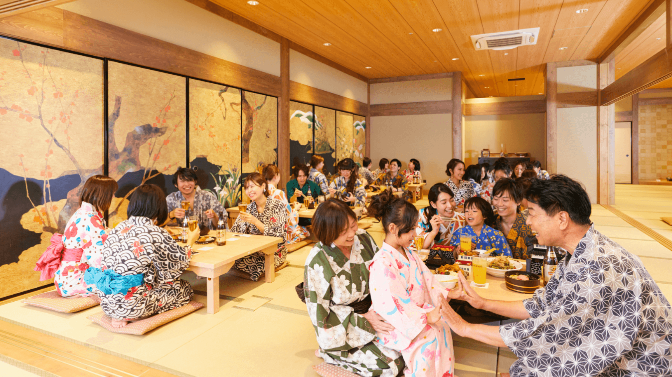 岩盤浴「熱風横丁」横と5階「天空庭園」の滝の横の2カ所に茶屋を設置。軽食をはじめ、岩盤浴とセットでデトックス効果のあるお茶や、和をテーマにした数々のスイーツをご用意しています。