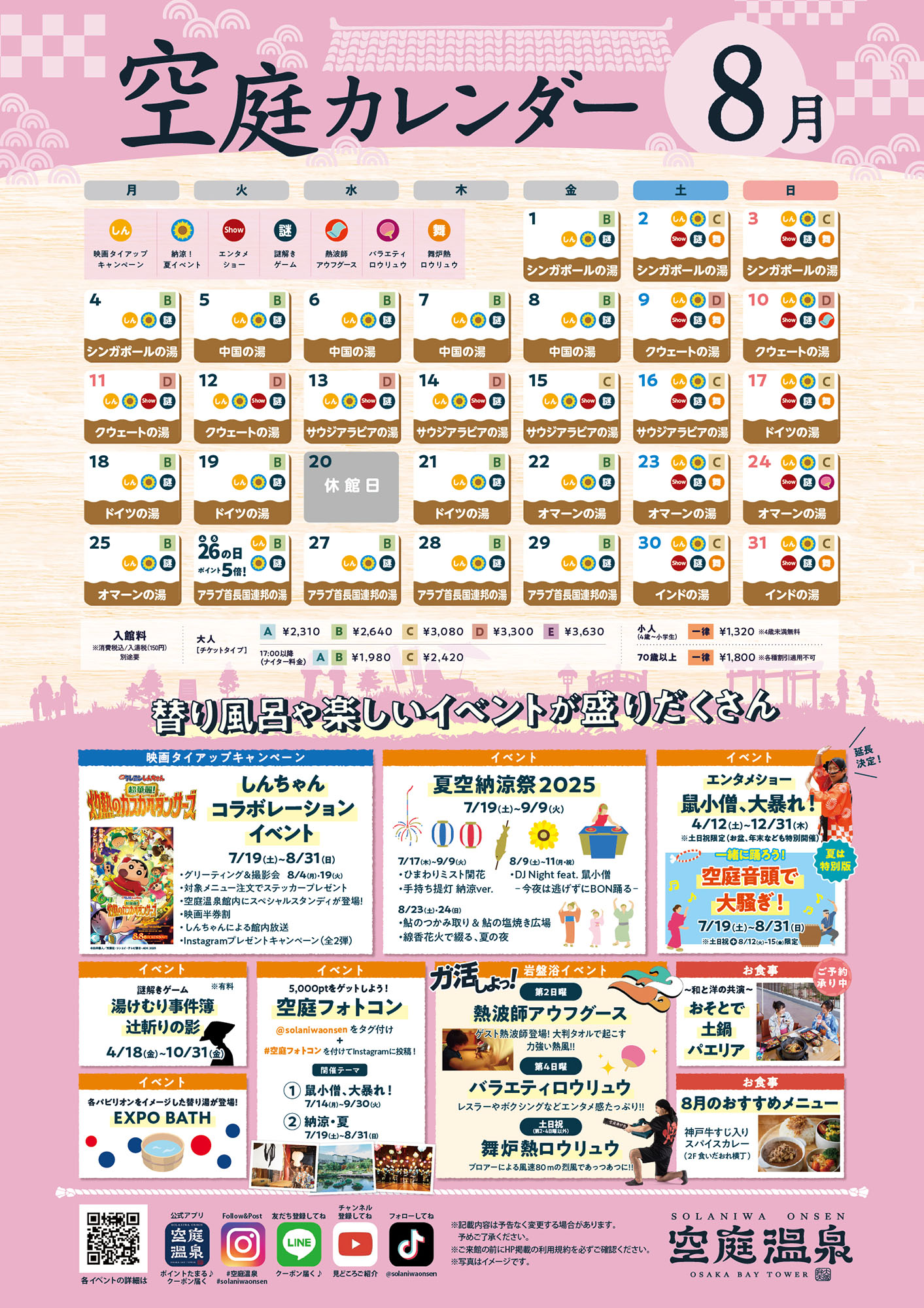 7/19(土)〜8/31(日)の土日祝 + 8/12(火)〜15(金)限定
