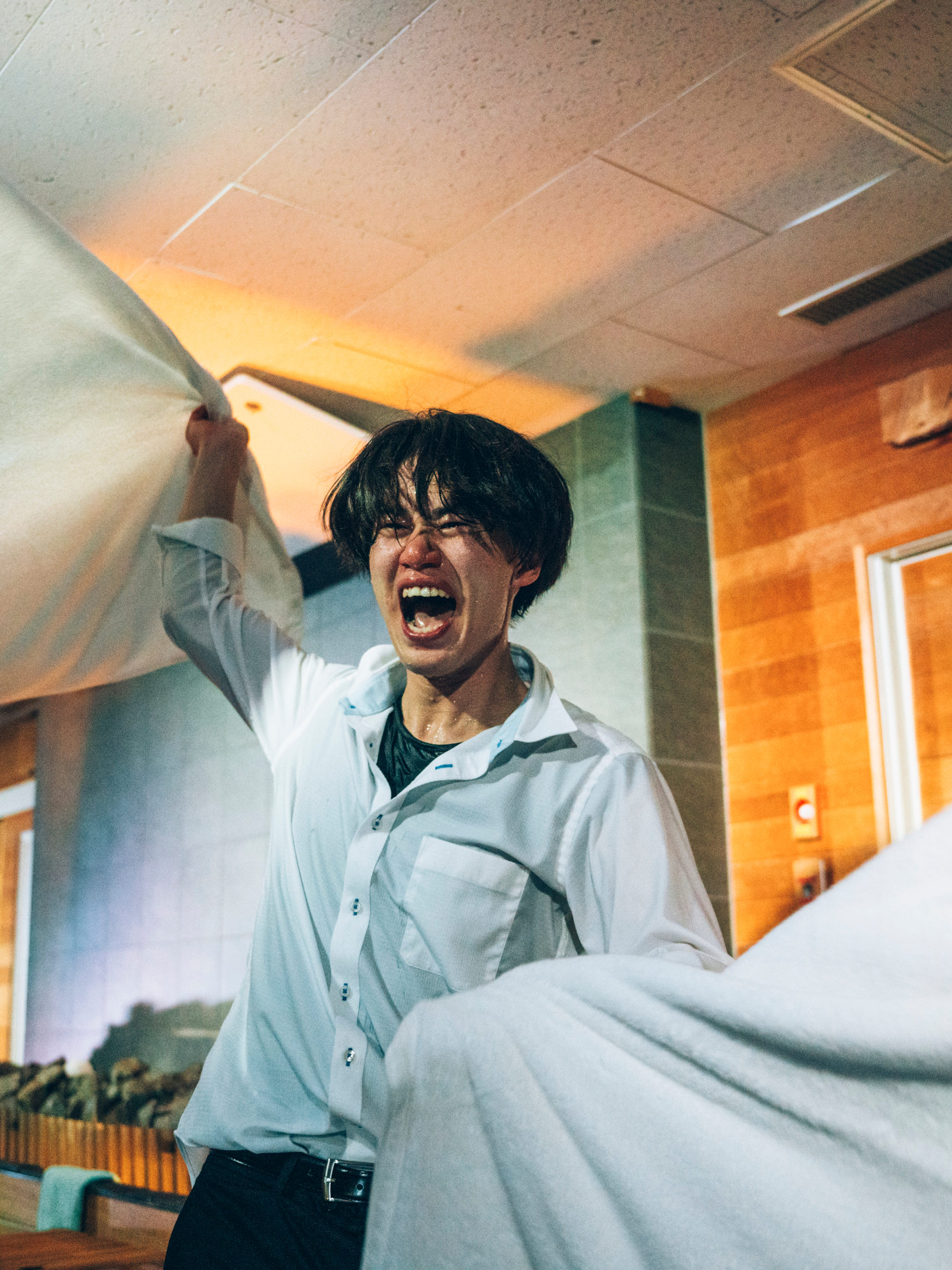 熱したサウナストーンにアロマ水などをかけた後、「熱波の伝道師」とも呼ばれる熱波師(アウフギーサー)が、大型タオルで高温の蒸気をあおぎ室内の温度を上げていきます。 ぶわっと吹く力強い熱風に、汗が噴き出す瞬間はたまらない心地良さです。