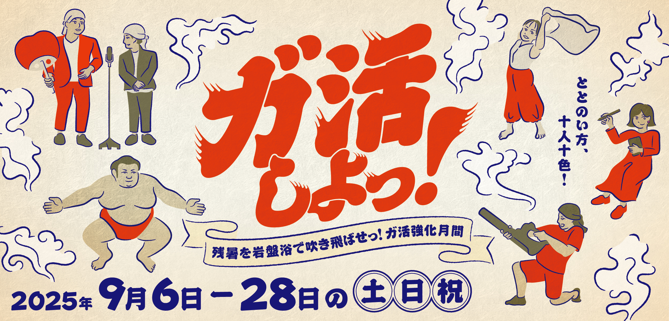 • 終了しました【2025.9/6-9/28】ガ活しよっ! 残暑を岩盤浴で吹き飛ばせっ! ガ活強化月間
